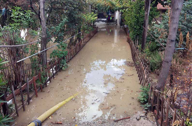 Kentimizde geçtiğimiz gece yaşanan sağanak yağış su baskınları neden oldu. Meydan Mahallesi’ndeki dolgu köprü yüzünden feyezan kanalı taştı, birçok evi su bastı.