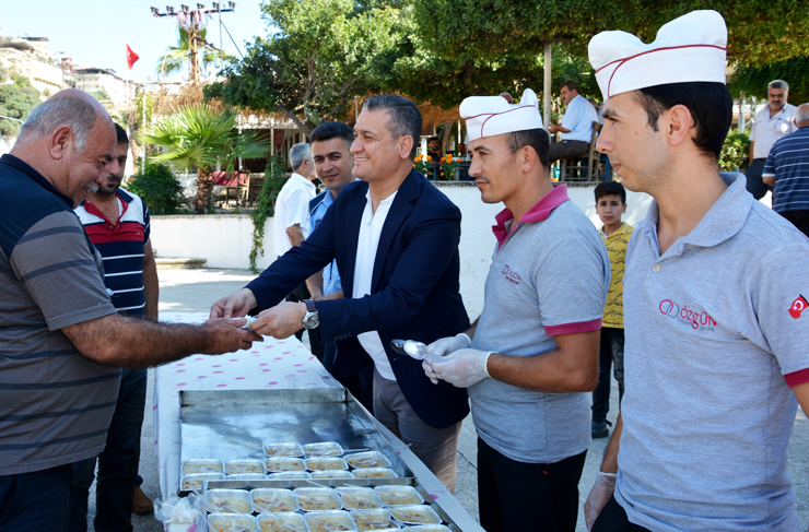Aşure dağıtım programına, MHP Belen İlçe Başkanı Seyfullah gürbüz, belediye meclis üyeleri, başkan yardımcıları, birim müdürleri, çeşitli sivil toplum kuruluşlarının temsilcileri de katıldı. (Haber Merkezi)