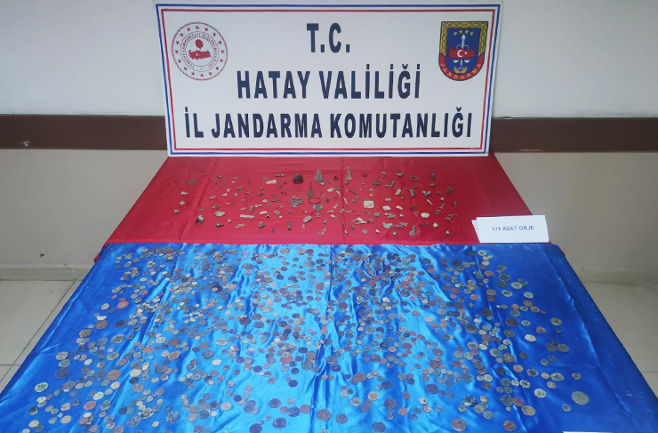 Hatay İl Jandarma Komutanlığı Kaçakçılık ve Organize Suçlarla Mücadele (KOM) Şube Müdürlüğü ile İskenderun İlçe Jandarma Komutanlığı tarafından, I.Ç. isimli şahsın araç ile İskenderun ilçesinden Kırıkhan ilçesine giderek tarihi eser niteliği olan obje ve sikkeleri satacağı bilgisi alınmasının üzerine harekete geçen ekipler, 4 kişiyi yakaladı.