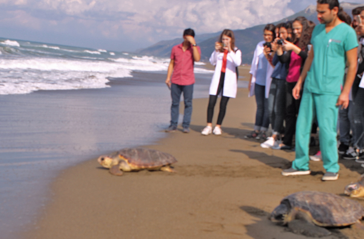 Rehabilitasyon merkezinin faaliyete geçmesinden bu yana 13 tane deniz kaplumbağası tedavi edilerek bugün de son 3 tanesini denize saldık. Bu kaplumbağa türleri, nesli tükenme tehlikesi altında olan türler ve biz ülke olarak Uluslararası Sözleşmelerle de nesli tükenme tehlikesi altında olan bu deniz kaplumbağalarımızı koruma taahhüdünü vermiş bulunmaktayız ve ülke olarak da bu taahhüdümüzü yerine getiriyoruz. Aynı zamanda da neslinin devamına katkıda bulunmuş oluyoruz. Ben Orman ve Su İşleri Bakanlığı Doğa Koruma Milli Parklar Genel Müdürlüğü adına bu faaliyetin gerçekleşmesinde Mustafa Kemal Üniversitesi Rektörlüğü ve Veterinerlik Fakültesi öğretim üyelerine, öğrencilerine, emeği geçen herkese, aynı zamanda kumsalda gerekli temizlik çalışmalarını yapan Hatay Büyükşehir Belediyesi, Samandağ Belediyemize, aynı zamanda bu koordinasyonu sağlayan Samandağ Kaymakamlığımıza teşekkür ediyorum” dedi.