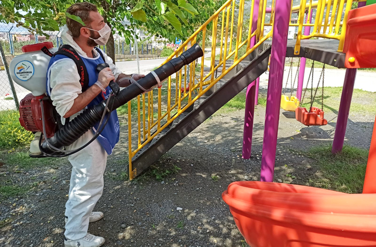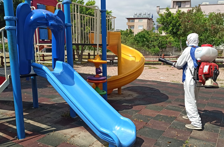 İskenderun Belediyesi Temizlik İşleri Müdürlüğü ekipleri, Başkan Fatih Tosyalı’nın talimatı ile bir süredir sokağa çıkmaları kısıtlanan 20 yaş altı gençler ve çocuklara hafta içi verilecek izin dolayısıyla şehirdeki tüm parklarda dezenfekte çalışmaları başlattı.