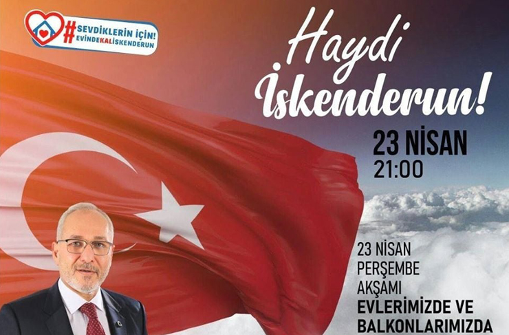 İskenderun Belediye Başkanı Fatih Tosyalı,23 Nisan Ulusal Egemenlik ve çocuk bayramı dolayısı tüm İskenderunluları ev ve işyerlerine bayrak asmaya davet etti. Belediye Başkanı Fatih Tosyalı; “Tüm İskenderunlu hemşerilerimizi 23 Nisan 2020, saat 21.00’de evlerinde ve balkonlarında bayraklarıyla 100. yıl coşkusunu, İstiklal Marşı’nı söyleyerek kutlamaya çağırıyoruz” açıklamasında bulundu.