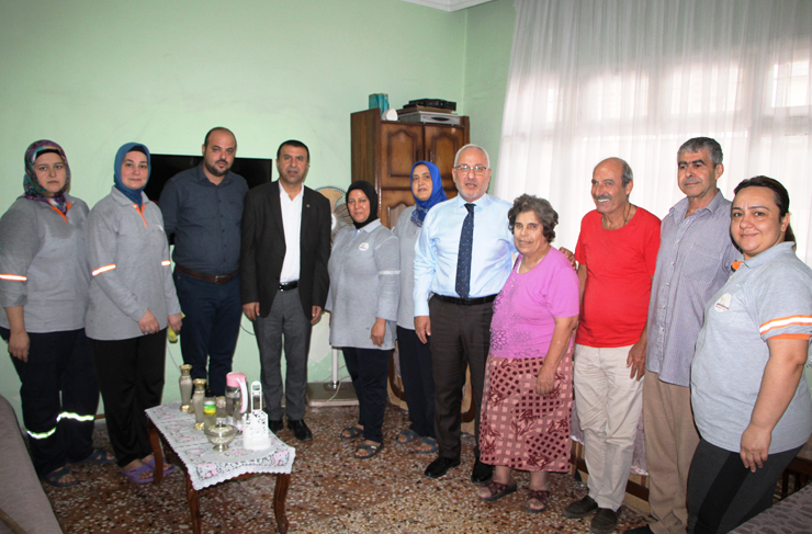 Yapılmakta olan çalışmalar hakkında bilgiler de veren Tosyalı; “Piri Reis Mahallesinde Semiha Hilaloğlu teyzemizi ‘Evde Temizlik Hizmeti’ kapsamında, muhtarlarımız ile birlikte evinde ziyaret ettik ve kendisine Barış Pınarı Harekâtına destek amaçlı şanlı Türk bayrağımızı hediye ettik. Semiha Teyzemizle sohbet ederek kahve davetine de icabet ettik. Sıcak misafirperverliği için kendilerine teşekkür ediyorum. Rabbim birlik ve beraberliğimizi bozmasın” dedi.
