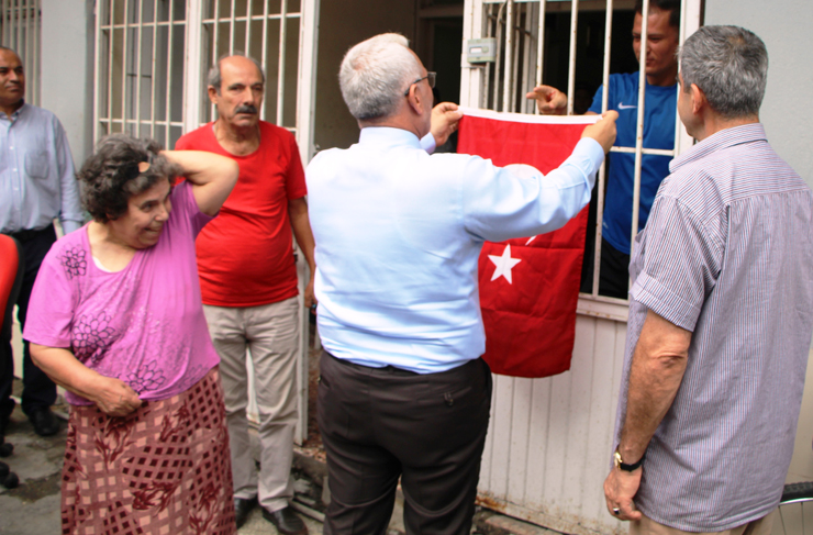 Yapılmakta olan çalışmalar hakkında bilgiler de veren Tosyalı; “Piri Reis Mahallesinde Semiha Hilaloğlu teyzemizi ‘Evde Temizlik Hizmeti’ kapsamında, muhtarlarımız ile birlikte evinde ziyaret ettik ve kendisine Barış Pınarı Harekâtına destek amaçlı şanlı Türk bayrağımızı hediye ettik. Semiha Teyzemizle sohbet ederek kahve davetine de icabet ettik. Sıcak misafirperverliği için kendilerine teşekkür ediyorum. Rabbim birlik ve beraberliğimizi bozmasın” dedi.