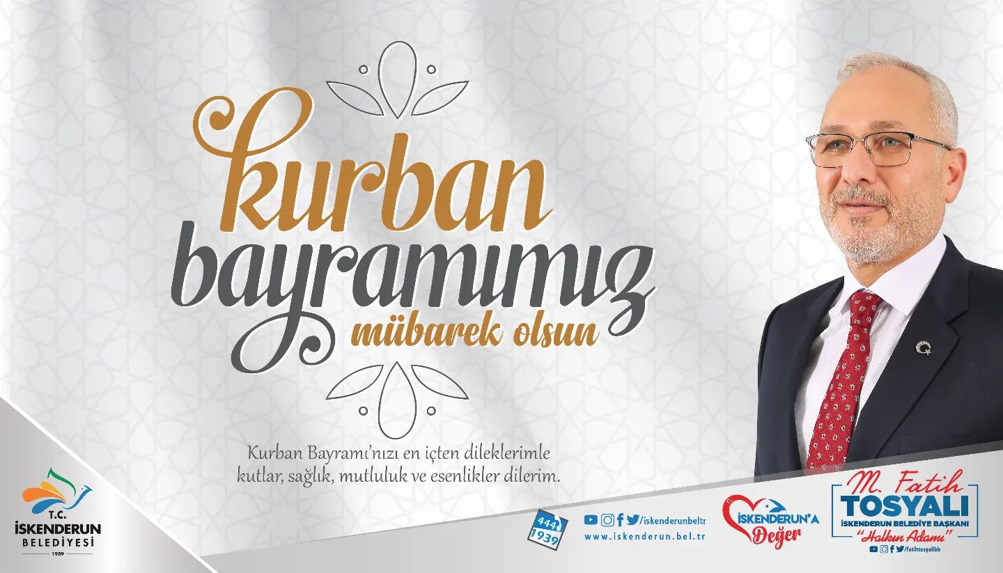 İskenderun Belediye Başkanı Fatih Tosyalı, Kurban Bayramı dolayısıyla yazılı bir mesaj yayımladı. Tosyalı mesajında; “Yardımlaşma, Dayanışma ve Kardeşlik duygularının zirveye ulaştığı bir Mübarek Kurban Bayramına daha ulaşmanın mutluluğu ve sevincini hep birlikte yaşıyoruz. Bereket, huzur ve kardeşliği paylaştığımız bu güzel günlerin, milletimize, İslam âlemine ve tüm insanlığa hayırlar getirmesini temenni ediyorum. Allah ibadetlerimizi kabul eylesin, Kurban Bayramımız mübarek olsun. Bu vesileyle kıymetli hemşerilerimin Kurban Bayramı’nı en içten dileklerimle kutluyor sağlık ve esenlikler diliyorum” ifadelerine yer verdi. (Haber Merkezi)