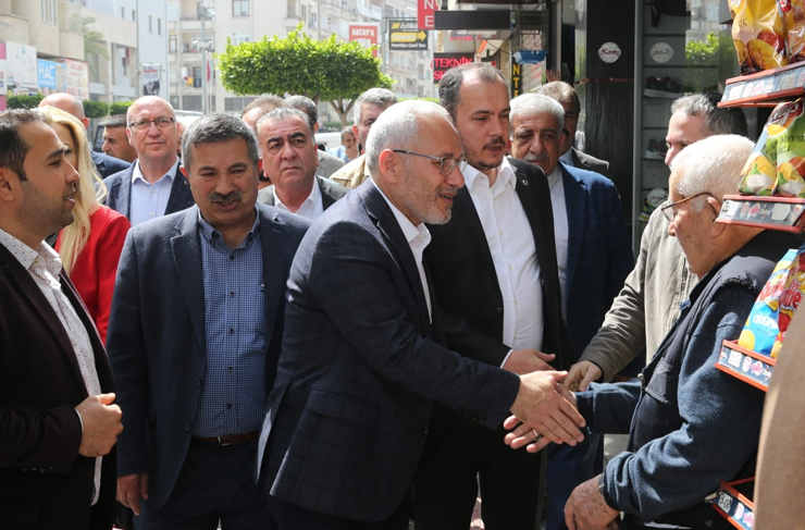 Çarşıda alış veriş yapan vatandaşlarla da bir araya gelen Tosyalı, hem vatandaşın hem de esnafın hayır dualarını alarak seçim çalışmalarını sürdürdü. (Haber Merkezi)