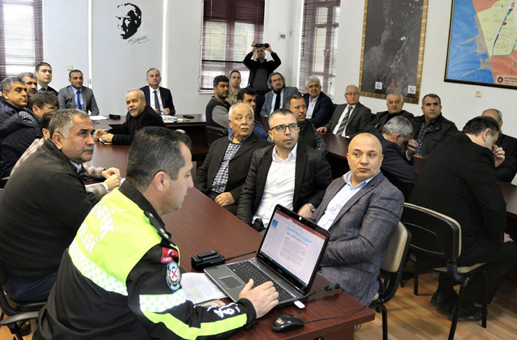 Söz konusu toplantı kapsamında; İskenderun İlçe Emniyet Müdürlüğü Trafik Denetleme Büro Amiri Komiser Mustafa Çuhadar tarafından yapılan sunum eşliğinde, Karayolları Trafik Yönetmeliği ve Karayolları Taşıma Yönetmeliği çerçevesindeki kural ve uygulamalara değinilmesinin yanı sıra sürücü, yolcu ve yaya olarak yer alan insan unsurunun yaptığı kural ihlalleri ve bu ihlallerin neden olduğu trafik kazalarının önlenmesine yönelik istişare de bulunuldu.