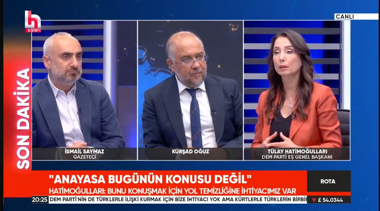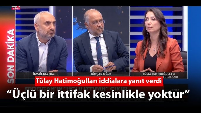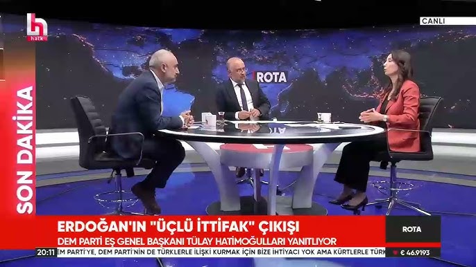 Halkların Eşitlik ve Demokrasi Partisi (DEM Parti) Eş Genel Başkanı Tülay Hatimoğulları, Halk TV’de Rota Programına katıldı. Hatimoğulları, Kürşad Oğuz ve İsmail Saymaz’ın sorularını yanıtladı. Cumhurbaşkanı Erdoğan’ın “En azından biz bu yolu AKP, MHP ve DEM olarak üçlü yürümeye karar verdik” sözlerinin yeni ittifak olarak anılmasına yanıt veren Hatimoğulları, bunun mümkün olmadığını ifade etti.