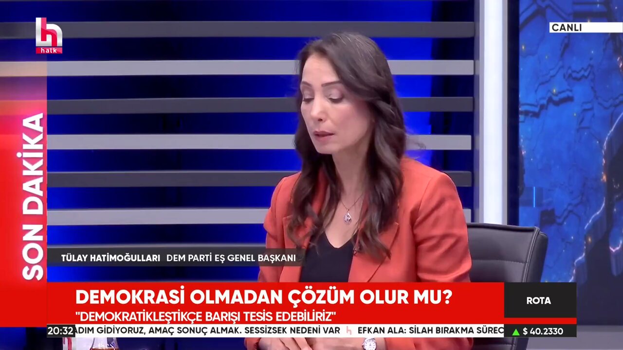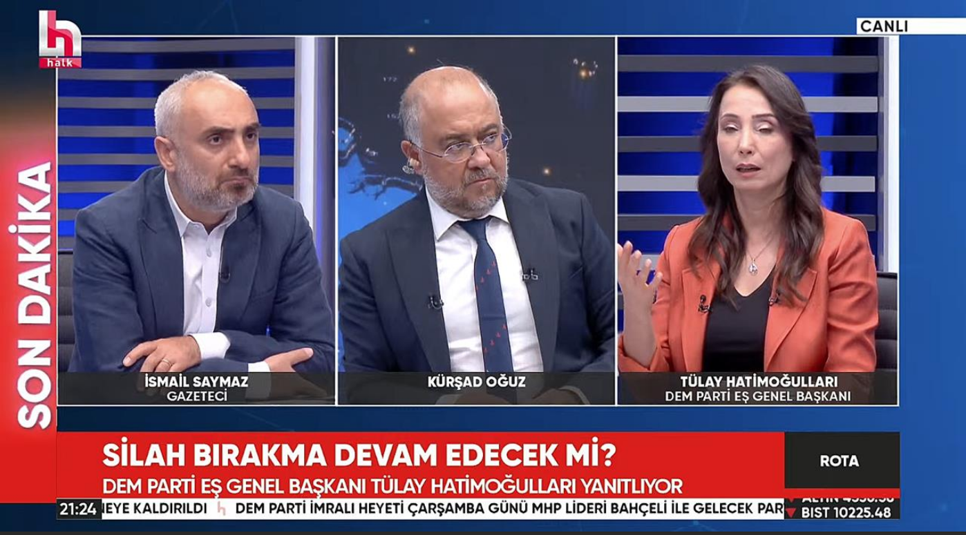 DEM Parti Eş Genel Başkanı Tülay Hatimoğulları, Halk TV’de katıldığı Rota Programında PKK’nın ‘Silah Bırakma’ sürecine ilişkin soruları yanıtladı.