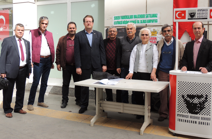 Geçtiğimiz hafta sonu Atatürkçü Düşünce Derneği İskenderun Temsilciliği öncülüğünde, Şeker Fabrikalarının satılmasına karşı “Fabrikalarımızı Sattırmayız” sloganıyla imza kampanyası düzenlendi.