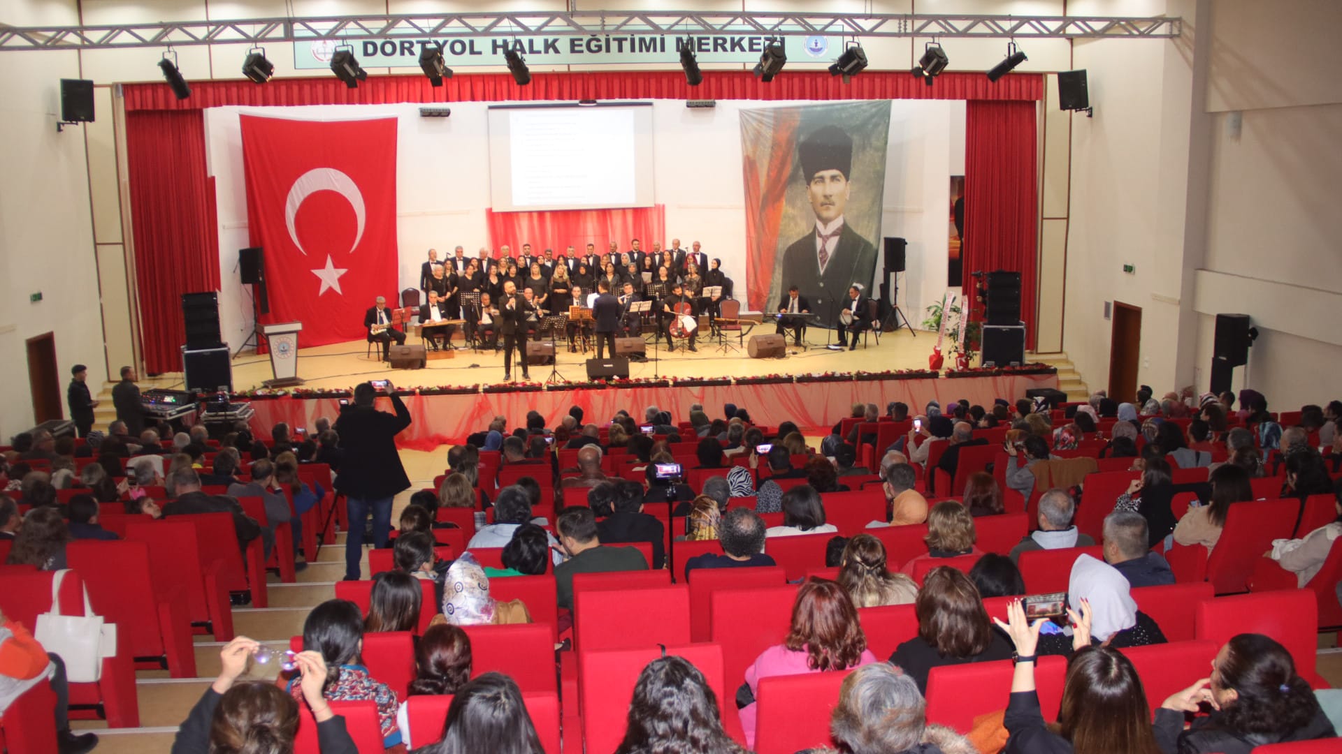 Halk Eğitim Merkezi Kırmızı Salonunda Dörtyol Belediye Başkanı Fadıl Keskin, Adalet ve Kalkınma Partisi Dörtyol İlçe Başkanı Osman Görgen, Milliyetçi Hareket Partisi Dörtyol İlçe Başkanı Ömer Oğuz Uçar, Dörtyol Ticaret ve Sanayi Odası Başkanı Ercan Yıldırım ile çok sayıda sanatseverin izlediği konseri şef Fatih Özeral yönetti.