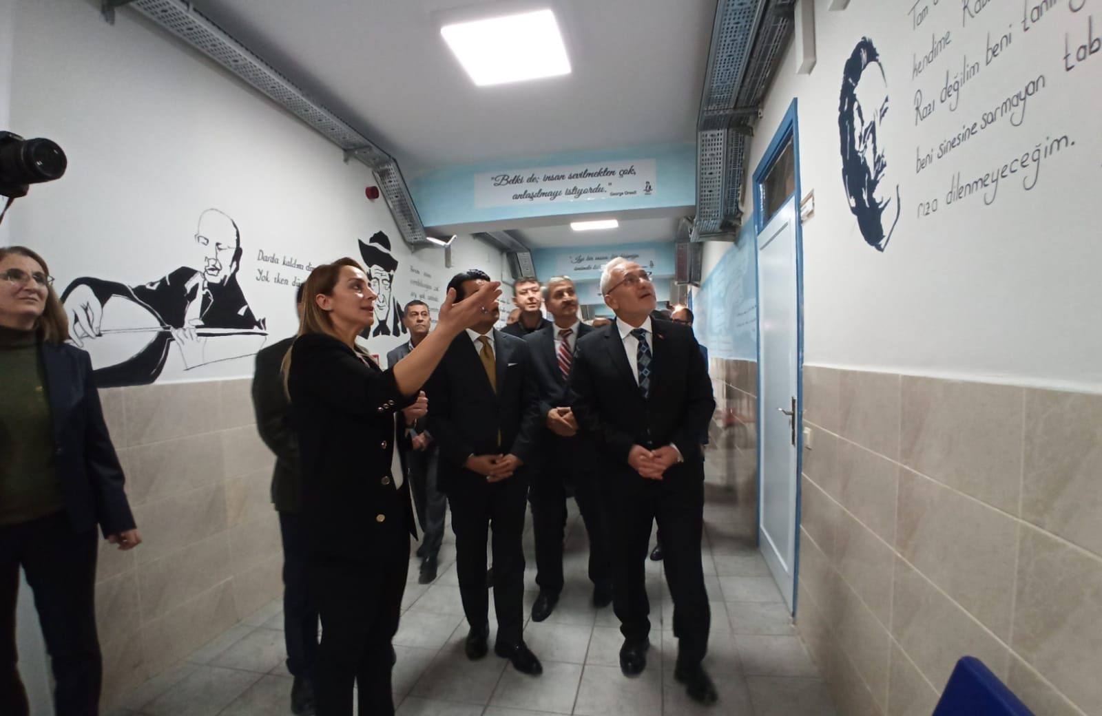 Türk edebiyatında büyük eserler bırakmış olan sanatçıların resimlerinin ve eserlerinden örneklerin yer aldığı Edebiyat Sokağı’nın görsel şölenine hayran kalan protokol üyeleri, emeği geçen öğretmenleri tebrik etti. (Haber: Helga TERBİYELİ)
