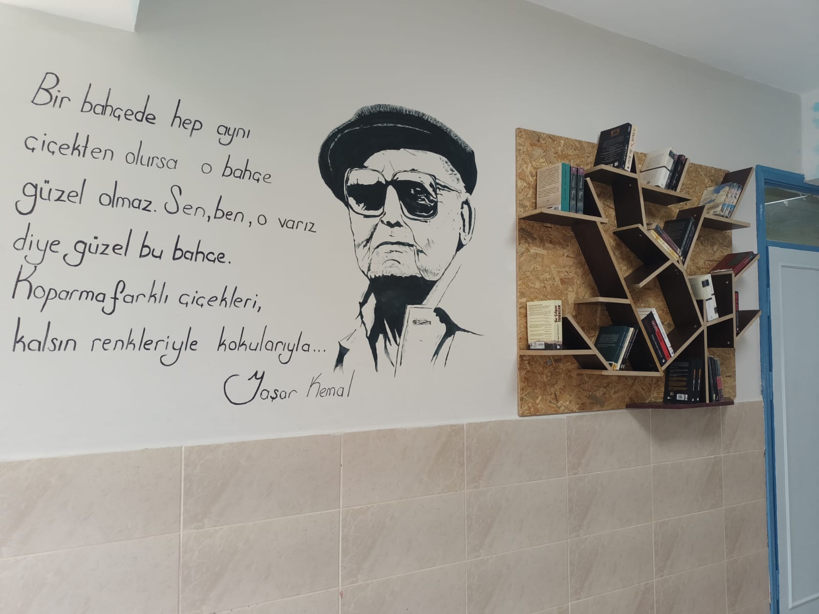 Rotary Mesleki ve Teknik Anadolu Lisesi Türk Dili ve Edebiyatı Öğretmeni Oya Can’ın gerçekleştirdiği proje kapsamında hayata geçirilen ‘Edebiyat Sokağı’nın yazılarını Oya Can ile birlikte Muhasebe Öğretmeni Semra Ulaş, resimleri Fevzi Çakmak Ortaokulu Görsel Sanatlar Öğretmeni Talip Yaldırak yaptı.