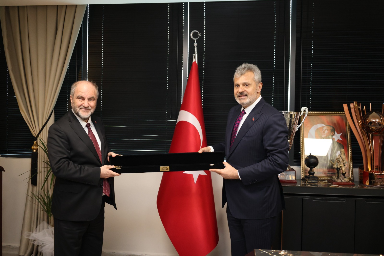 Başkanlık makamında gerçekleştirilen ziyaretin sonunda Başkan Öntürk, Büyükelçi Köroğlu’na hediye takdim etti. (Haber Merkezi)