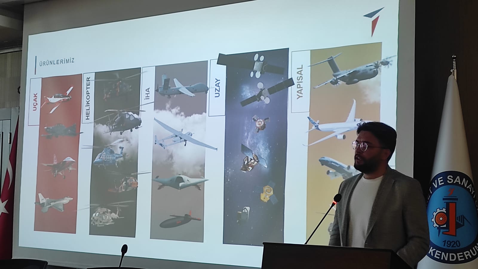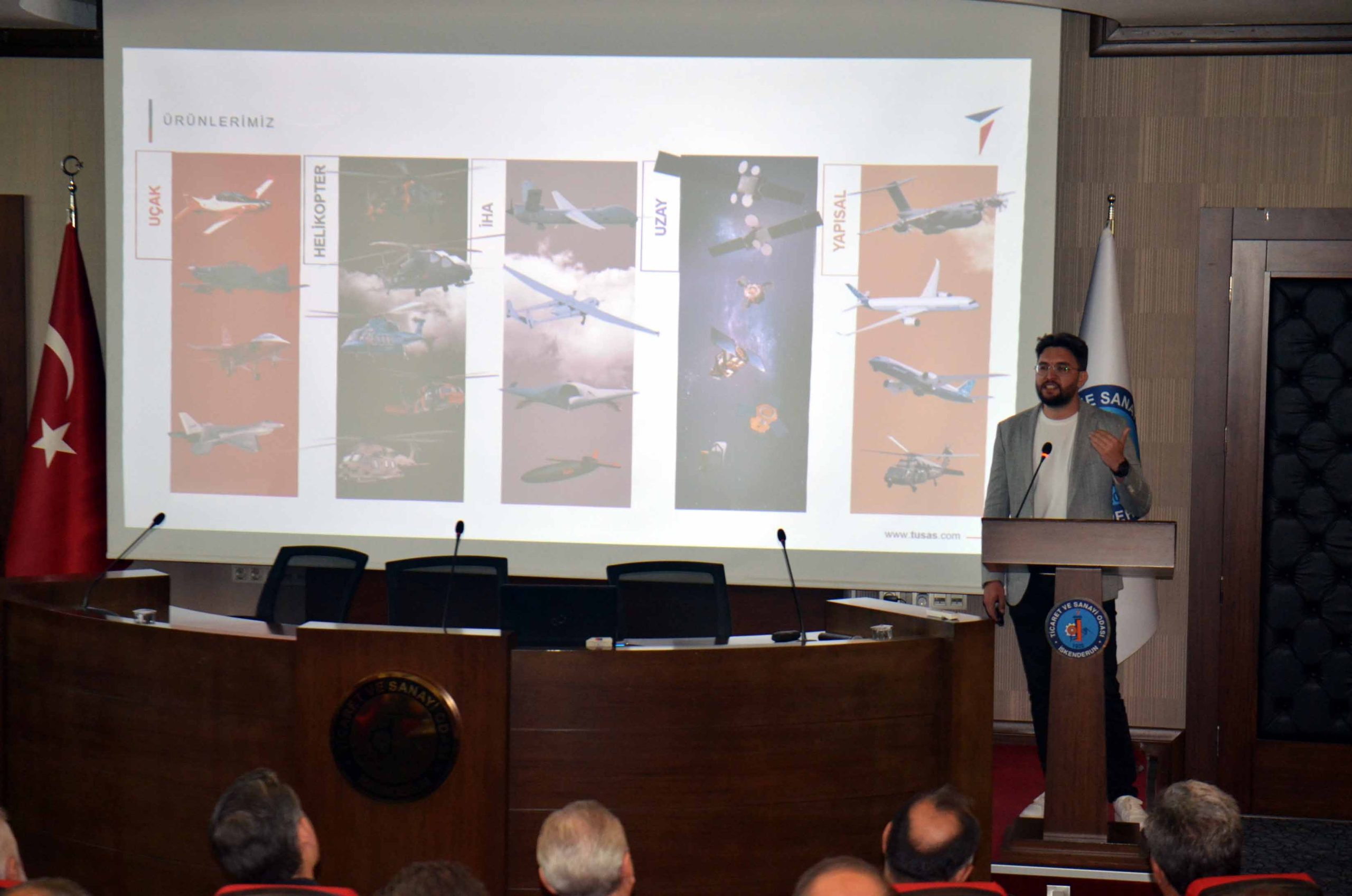 Toplantıda TUSAŞ Sanayi Geliştirme Mühendisi Ahmet Furkan Öney bir sunum yaparak şirketin faaliyetleri hakkında bilgi verdi. Öney, TUSAŞ’ın 1973 yılında kurulduğunu, 1984’te F-16 üretimiyle ABD ortaklığıyla faaliyetlerini sürdürdüğünü, 2005 yılında tamamen Türk sermayesine geçtiğini hatırlattı.