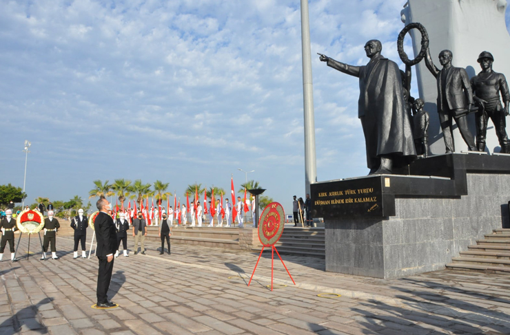 10 Kasım 2021 Çarşamba günü saat: 09.00’da Atatürk Anıt Alanı’nda gerçekleştirilen Çelenk Sunma Töreni’nde ilk olarak Kaymakam İskender Yönden, Garnizon Komutanı Tuğgeneral Hakan Tutucu ile Belediye Başkanı Fatih Tosyalı tarafından Ata’mızın manevi huzuruna çelenk sunuldu.
