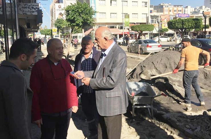 İskenderun Belediye Başkanı Seyfi Dingil, Ulucami caddesinde eski bitpazarı karşısında devam eden kaldırım düzenleneme çalışmalarını yerinde inceledi.