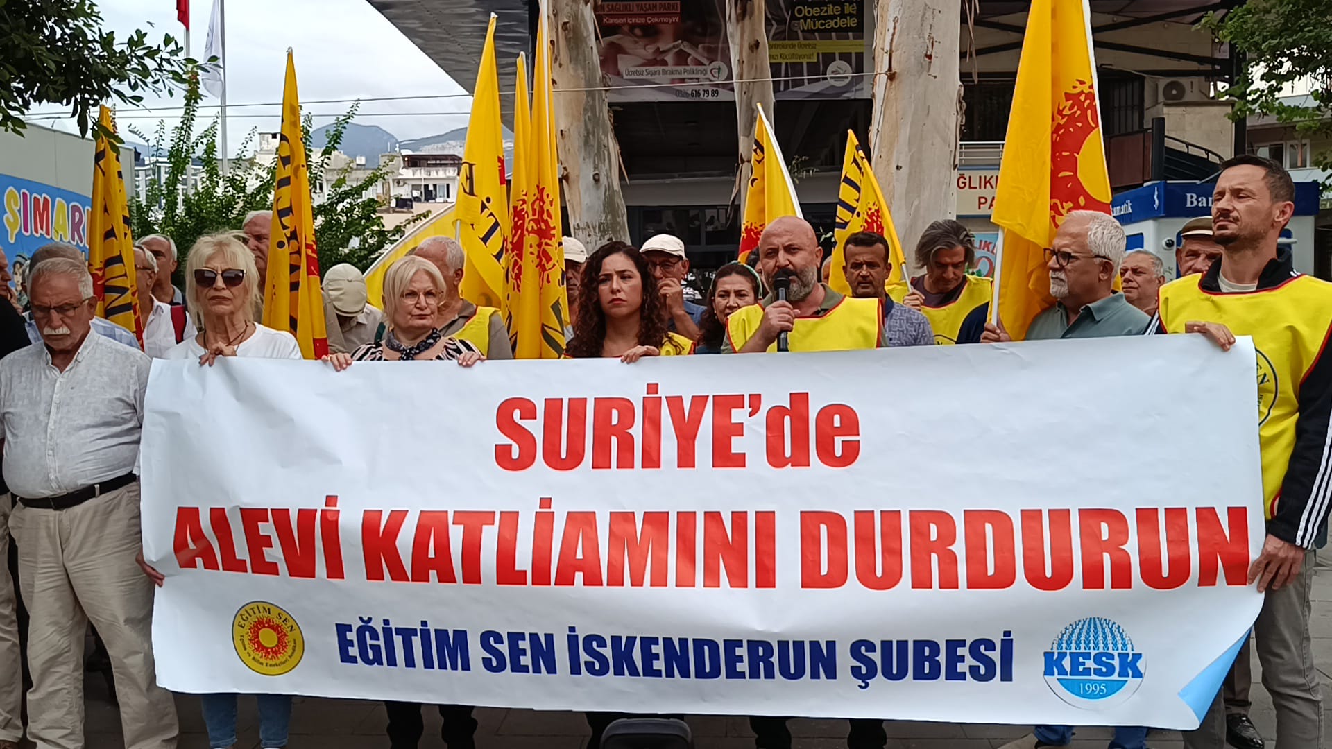 Eğitim Sen İskenderun İlçe Örgütü, Suriye’de yaşanan Alevi katliamına karşı basın açıklamasında bulundu.