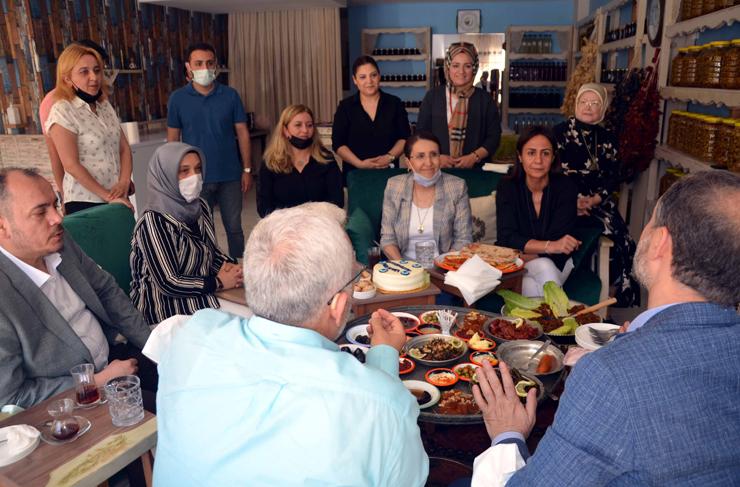 Ziyarette, Ak Parti Hatay Milletvekili Abdulkadir Özel ve İskenderun Belediye Başkanı Fatih Tosyalı, hanımların el emeği ile yaptıkları Hatay’ın yöresel lezzetlerini yerinde gördüler ve destek sözü verdiler. (Haber Merkezi)