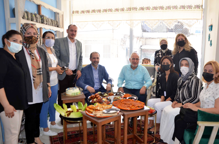 Ziyarette, Ak Parti Hatay Milletvekili Abdulkadir Özel ve İskenderun Belediye Başkanı Fatih Tosyalı, hanımların el emeği ile yaptıkları Hatay’ın yöresel lezzetlerini yerinde gördüler ve destek sözü verdiler. (Haber Merkezi)