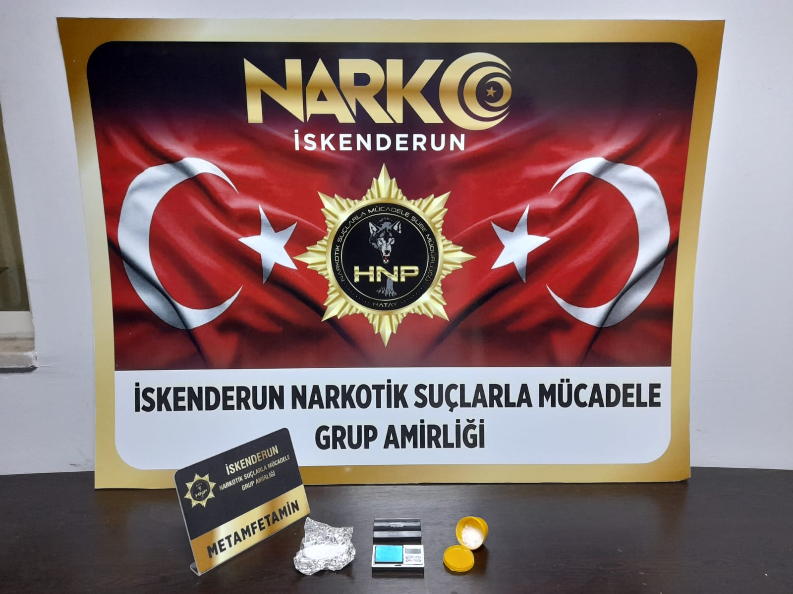İlk olarak İskenderun Numune Mahallesinde bulunan E.B.’nin ikametinde arama yapıldı. İkamette bulunan şahısların yapılan üst aramasında; 22,10 gram metamfetamin ile 1 adet hassas terazi ele geçirildi. Olayla ilgili olarak da ikamette bulunan E.B. ile M.B. yakalandı ve haklarında adli işlem yapıldı.