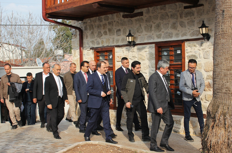 Heyet daha sonra ilçede restorasyonu tamamlanan kilise ve vakıf evinde de incelemelerde bulundu. Daha sonra ilçeye denizden bir bakış için tekne turu gerçekleştiren heyet, tekne turunun ardından ilçeden ayrıldı.