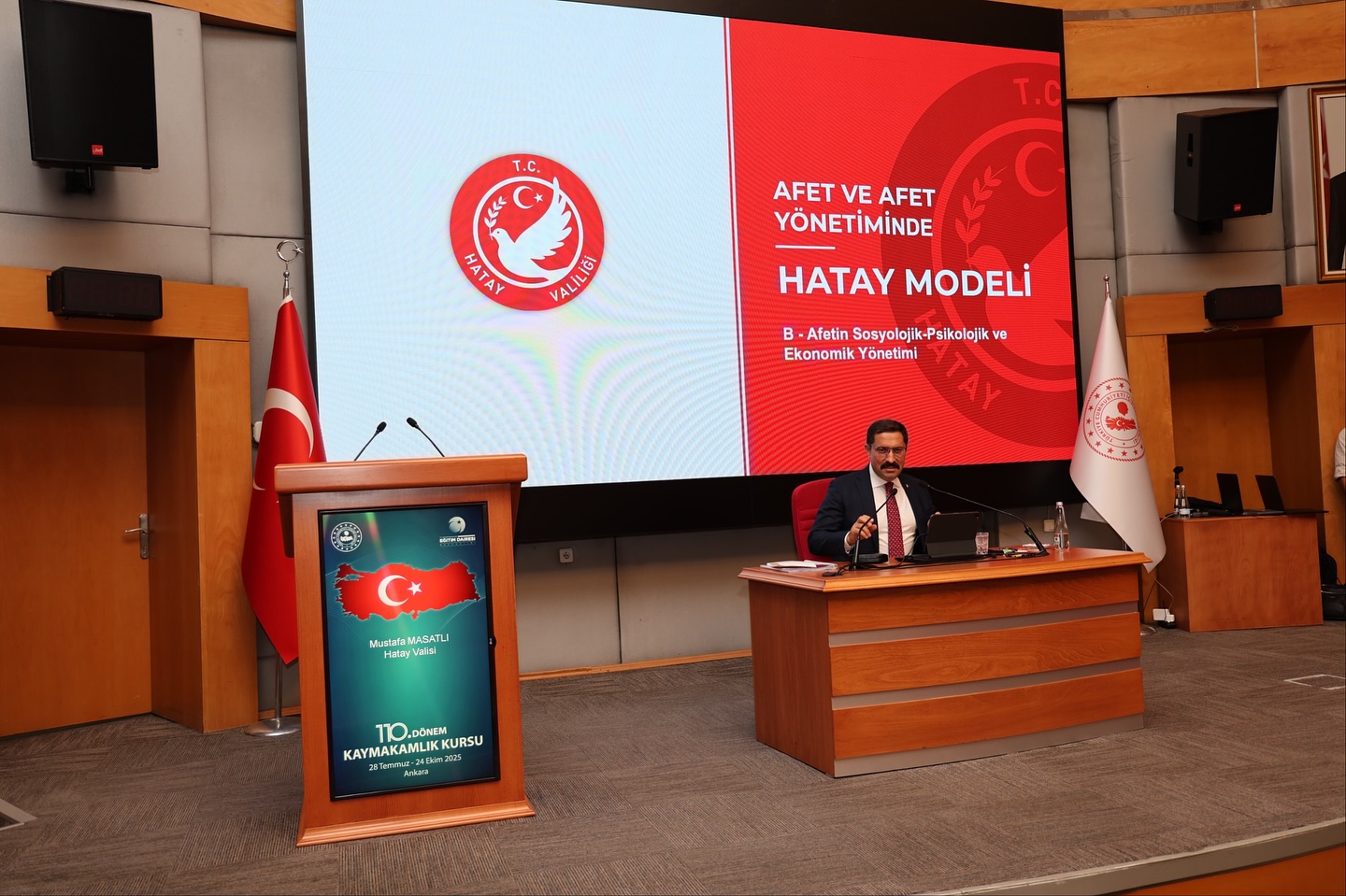Hatay Valisi Mustafa Masatlı, Başkentte düzenlenen 110. Dönem Kaymakam Adayları Eğitim Programı kapsamında düzenlenen eğitimde, “Afet ve Afet Yönetimi” konulu sunumuyla kaymakam adaylarıyla bir araya geldi.