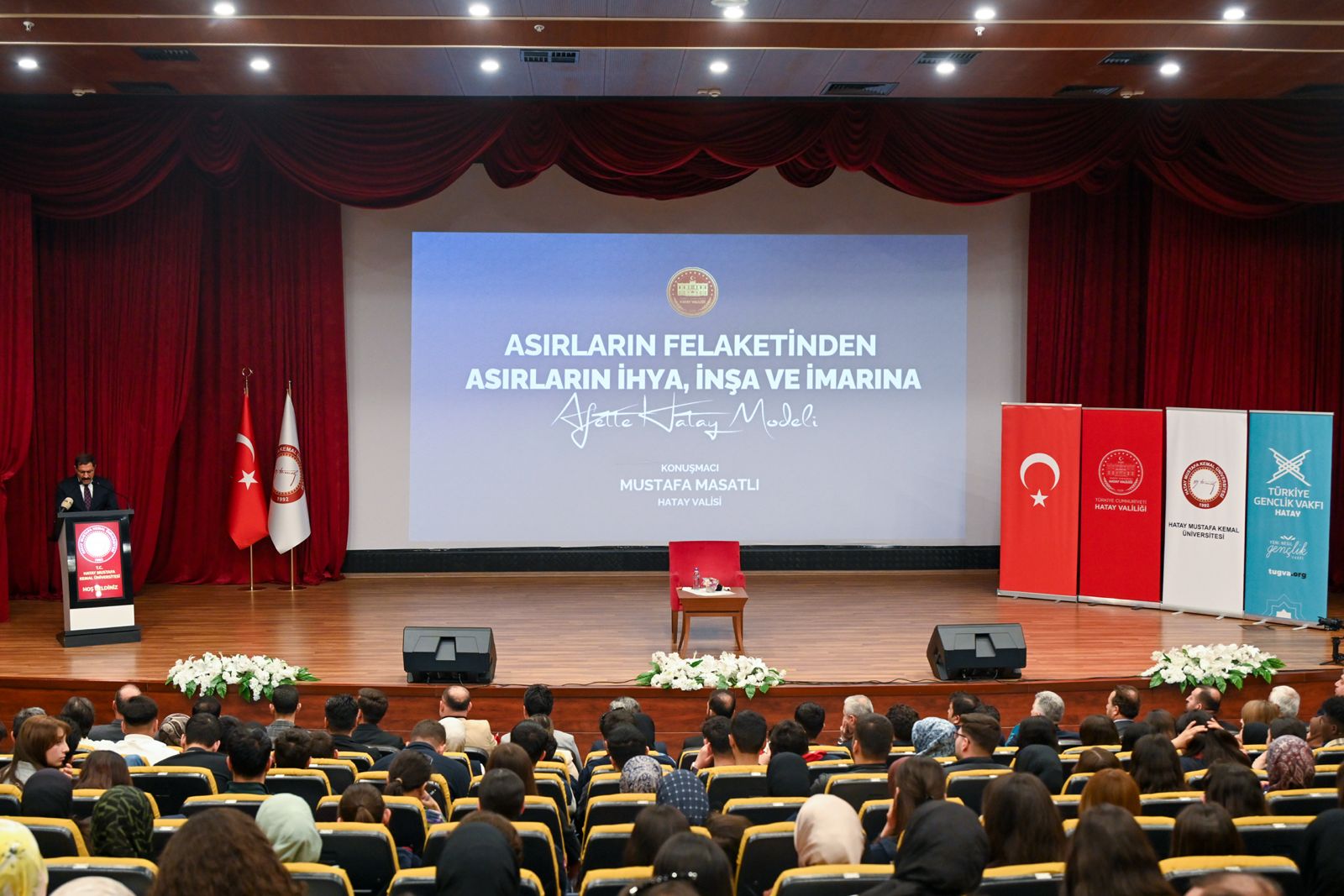 Hatay Mustafa Kemal Üniversitesi ve Türkiye Gençlik Vakfı (TÜGVA) iş birliğiyle düzenlenen ‘İhtisas Akademi’ programında, 6 Şubat depremlerinin ardından kentin ihya, inşa ve imar süreci ile ‘Afette Hatay Modeli’ ele alındı.