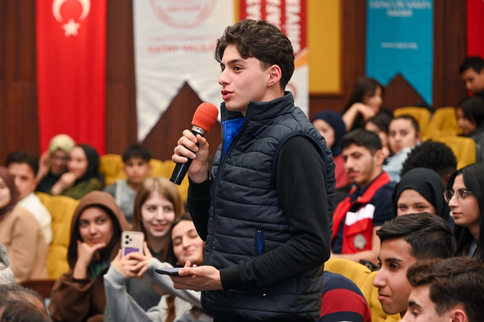 Söyleşi sonrası Hatay Valisi Mustafa Masatlı öğrencilerin sorularını yanıtladı. Program, hediye takdimi ve toplu fotoğraf çekimiyle sona erdi. (Haber Merkezi)