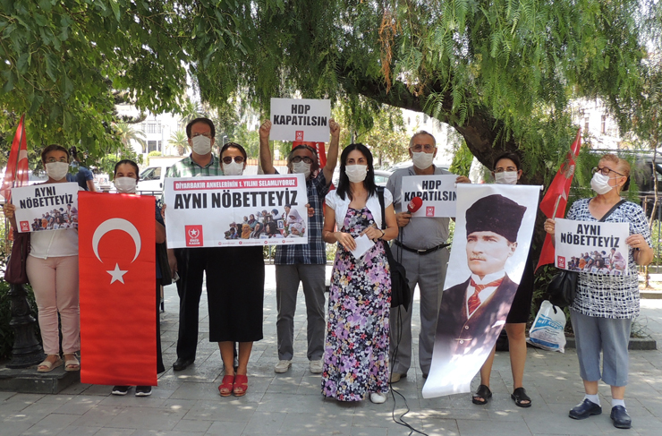 Diyarbakır annelerimiz yaz-kış, soğuk ve sıcak demeden kararlı eylemlerini sürdürüyorlar. Salgın hastalık döneminde bile geri adım atmayarak, kararlıklarını ortaya koymuşlardır. Evlatları için mücadele eden anneler aynı zamanda vatanı için teröre karşı mücadele kahramanlardır. Diyarbakır annelerini Hatay’dan bir kere daha selamlıyoruz. Evlatlarımızı dağa kaçırmasında yardımcı olan terör örgütü PKK’ya yataklık eden HDP kapatılmalıdır. Diyarbakır annelerinin sürdürdüğü bir yıllık eyleme bir saatlik temsili nöbetle destek veriyoruz. Annelerin eylemine bütün halkamızın destek vermesini istiyoruz” şeklinde konuştu. (Haber: İlyas Edip TERBİYELİ)