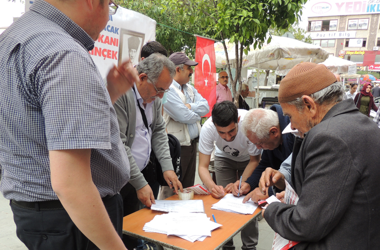 Genel Başkanımız mutlaka Cumhurbaşkanı adayı olacaktır. Bu imza masaları 9 Mayıs 2018 tarihine kadar açık kalacaktır. Bütün vatandaşlarımızı imza kampanyasına destek vermeye çağırıyoruz. Bu topladığımız imzaların sahipleri ile 4 Mayıs günü irtibata geçip, vatandaşlarımızı arabalarımızla ilçe seçim kurulları önüne götüreceğiz. Genel Başkanımız mutlaka ve mutlaka aday olarak çıkacak, yüz binler değil, yüzbinlerce imza ile aday olacaktır” dedi.