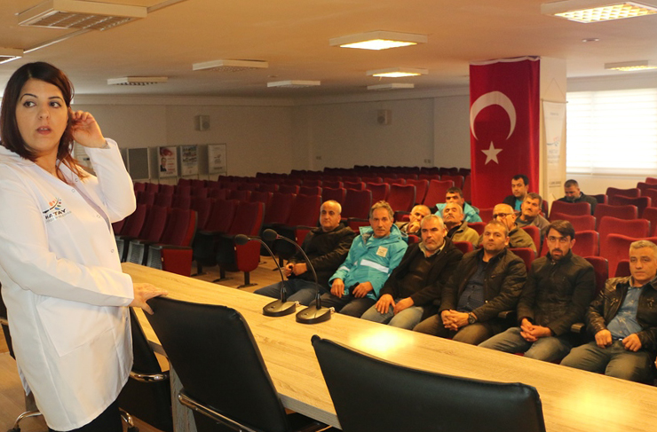 Arsuz, Belen, İskenderun ve Payas’ta görevli Büyükşehir personellerine verilen eğitim seminerinde verem hastalığı hakkında bilgiler aktarıldı.