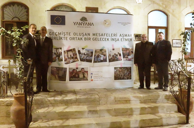 Antakya Rum Ortodoks Kilisesi Vakfı Başkanı Fadi Hurigil gösterim öncesi yaptığı konuşmada; “RUMVADER tarafından yürütülmekte olan ‘Azınlık Vatandaşları-Eşit Vatandaşlar’ başlıklı Avrupa Birliği Projesi çerçevesinde, Antakya Rum Ortodoks Kilisesi Vakfı ile RUMVADER işbirliği ile Haziran 2014’te Antakya’da ‘Cemaatin Geleceğini Konuşuyoruz’ adlı iki gün süren bir atölye çalışması düzenledik. 2014-2015 yıllarında ‘Sosyal Medya ve Azınlıklar’ projesi gerçekleştirdik. Son olarak ise geçtiğimiz sene içerisinde bir kısım çekimleri Antakya ve Arsuz’da yapılan Yan Yana projesi oldu ve bu bizim 3. Proje birlikteliğimizdir” diye konuştu.