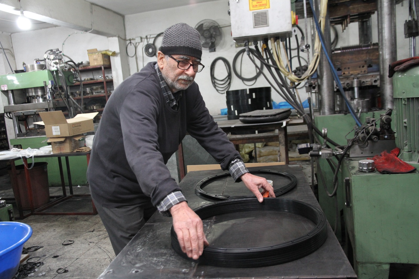 Bundan kırk yıl önce tek başına çıktığı yola, bugün 30 kişilik bir ekiple devam ettiğini anlatan Bilmez; “Kauçuk ürünleri, silikon gibi şeyler üretiyoruz. Mesleğe 1982 senesinde başladım. 40 yıldır bu işi yapıyorum. Bu işe ilk başladığım dönemlerde herkes bildiği işi yapıyordu, sistem basitti. Son 20 yılda sistem değişti. Kendimizi sürekli yeniledik, buraya kadar geldik. Yenilikleri takip etmeye, yenilenmeye devam ediyoruz” dedi.