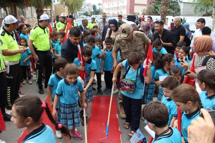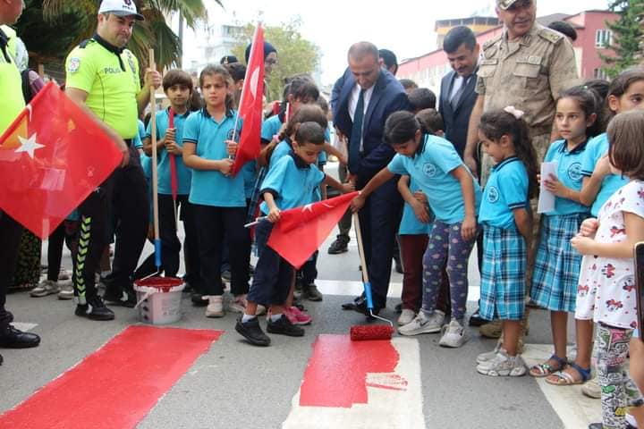 Bu doğrultuda, ilçemizde de Barbaros Mahallesi mevkiinde Naciye Suna Oktay Tekin İlkokulu önündeki yaya geçidinde bir program gerçekleştirildi. Tertip edilen program; İskenderun Kaymakamı Murat Sefa Demiryürek, İlçe Emniyet Müdürü Nevzat Güneş, Jandarma Komutanı J.Binbaşı Yusuf Yıldırım, Milli Eğitim Müdürü Ali Haytaz, Kurum Müdürleri, Okul İdarecileri, öğretmenler, öğrenciler, veliler ve basın mensuplarımızın katılımlarıyla gerçekleştirildi.