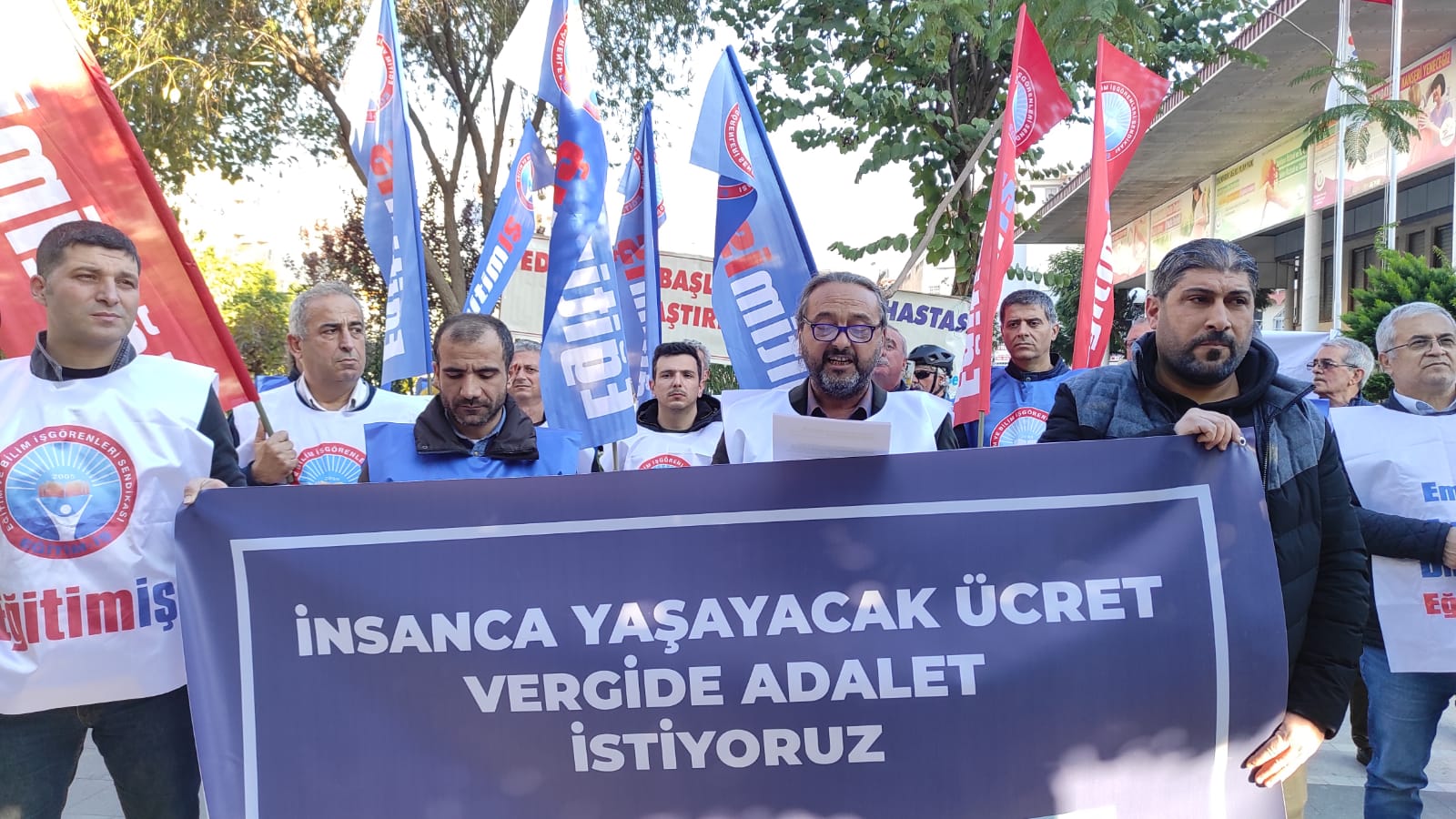Eğitim İş Sendikası İskenderun Şubesi üyeleri, açıklanan yeni vergi dilimlerinin ardından açıklamalarda bulundu.