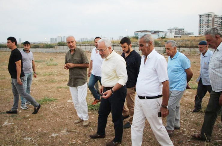 Yıldırımtepe Mahallesinde bulunan muhtarlık yanındaki boş arazide yapılması planlanan projeleri yerinde incelediklerini belirten Başkan Fatih Tosyalı; “Bu alana tüm bölgeye hitap edecek sanayi tarafına geçiş için bir köprü, yürüyüş yolu, çok amaçlı park, sosyal tesisler ve okul yapımı için çalışma içerisindeyiz.
