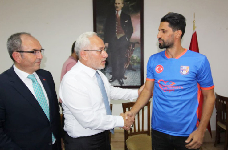 Bölgesel Amatör Lig (BAL) temsilcimiz 5 Temmuz İskenderunspor’da Belediye Başkanı Fatih Tosyalı, Turuncu-Mavili renkleri zirveye dikmeye kararlı. Geçen Sezon Payasspor’da 25 karşılaşmada forma giyen yıldız futbolcu Stoper Onur Çakır, Turuncu-Mavili takım ile anlaştı. 33 yaşındaki Onur Çakır için imza töreni düzenlendi. İmza törenine İskenderun Belediye Başkanı Fatih Tosyalı, Başkan Yardımcıları Kemal Nadir Ünal, Ahmet Keskin, Destek Hizmetler Müdürü Ergün Saydam, Kulüp As Başkanı Bünyamin Saraçoğlu, Teknik Direktör Hıdır Özdemir, yardımcısı Halit Yavuz ve Onur Çakır katıldı.