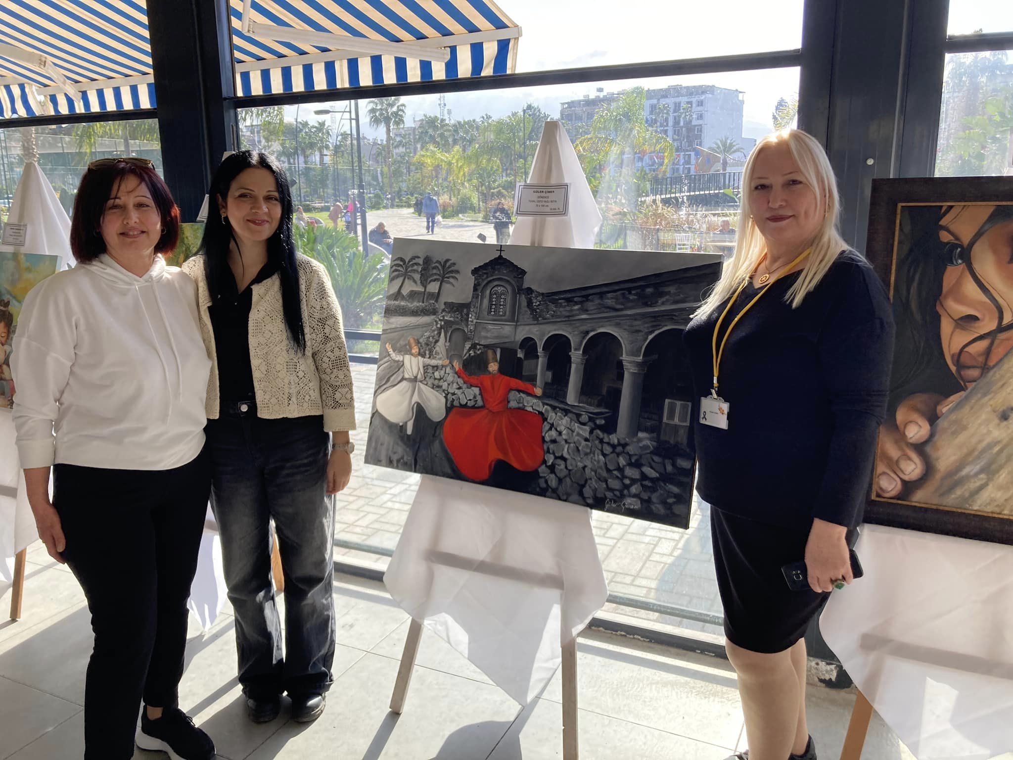 “6 Şubat tarihinde yaşadığımız asrın depreminde kaybettiğimiz 50 bin canımızı anmak adına 6 Şubat 2024 Salı günü, 7,6 büyüklüğündeki ikinci depremin saati olan 13:24’te, ‘Yitik Sokaklarda Yeşeren Umutlar’ temalı bir sergi açtık. Sergiye katılan sanatçıların tamamı depremzede.. Depremin 1. Yıldönümünde açtığımız resim, heykel ve seramik sergimizde ana tema depremden ziyade depreme rağmen umudunu kaybetmeyen halkın vurgulandığı eserler yer alıyor. Kısa zamanda büyük bir özveri ile gece gündüz çalışarak eserlerini sergiye yetiştirdiler.