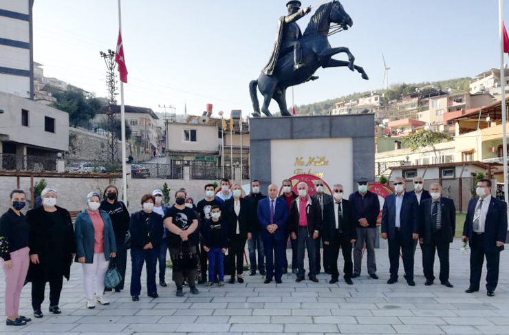 CHP Belen İlçe Başkanı Fevzi Yüksel, büyük önderi vefatının yıldönümünde anmak için bir araya geldiklerini ifade ederek; “Bugün büyük Önder Mustafa Kemal Atatürk’ün aramızdan ayrıldığı gün… E-sasında aramızdan ayrılmıyor her gün yüreğimizde, her gün beynimizde, her gün ruhumuz da… Gösterdiği yolda, gösterdiği hedeflere hızla yürüyeceğiz ve geri dönüp bakmayacağız. Bugün Mustafa Kemal’in vücudu aramızdan ayrılabilir ama Mustafa Kemal’in hedefleri, gösterdiği yol, her gün devam ediyor. Büyük önderimiz Mustafa Kemal Atatürk en büyük kurtarıcımız, en büyük kurucumuz, en büyük Türk! O’nun izinde, onun gösterdiği yolda azimle, kararlılıkla yürüyeceğiz. Bizi bu yoldan döndürmeye hiç kimsenin gücü yetmez yetmeyecek” dedi.