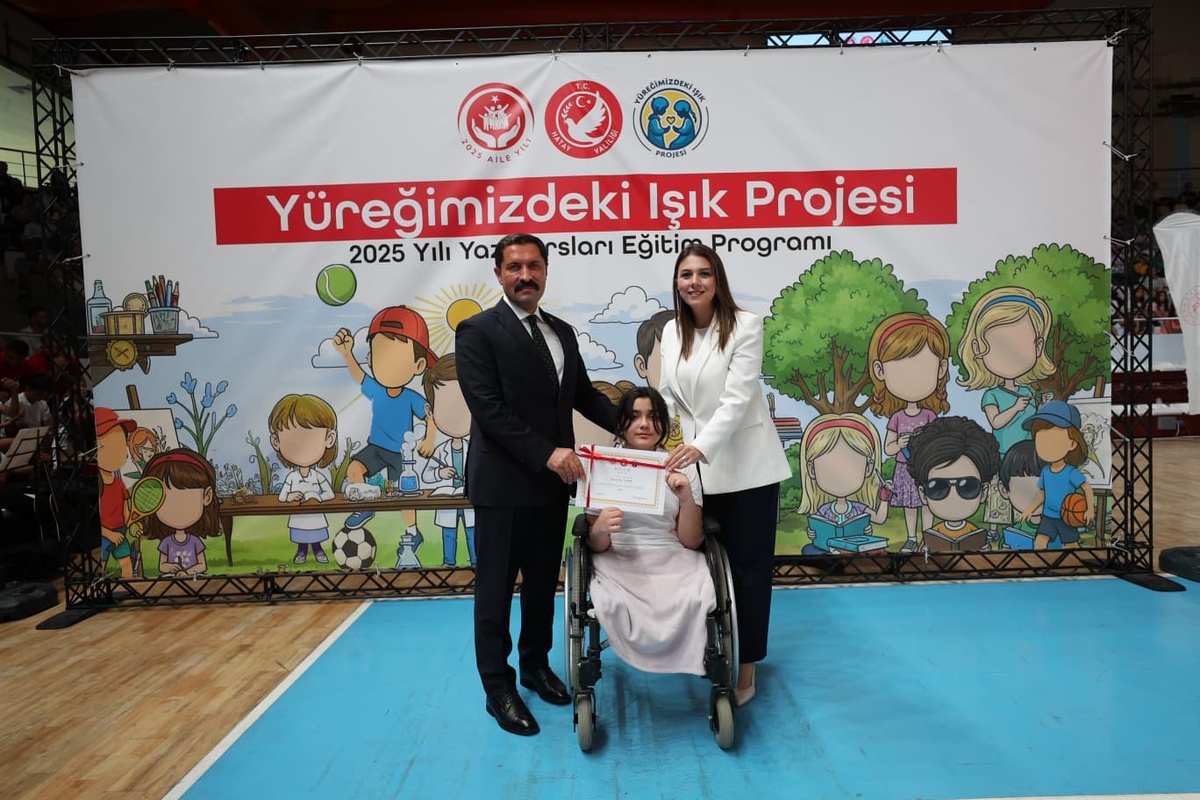 “Yüreğimizdeki Işık Projesi” kapsamında 1 Temmuz-1 Eylül 2025 tarihleri arasında düzenlenen “2025 Yılı Yaz Kursları Eğitim Programı”nın Kapanış Töreni, Hatay Valisi Mustafa Masatlı ve eşi Esra Masatlı ile birlikte Vali Yardımcıları, İlgili kurum yetkilileri, kurslardan istifade eden çocuk ve gençler, veliler ve çok sayıda davetlinin de katılımıyla gerçekleştirildi.