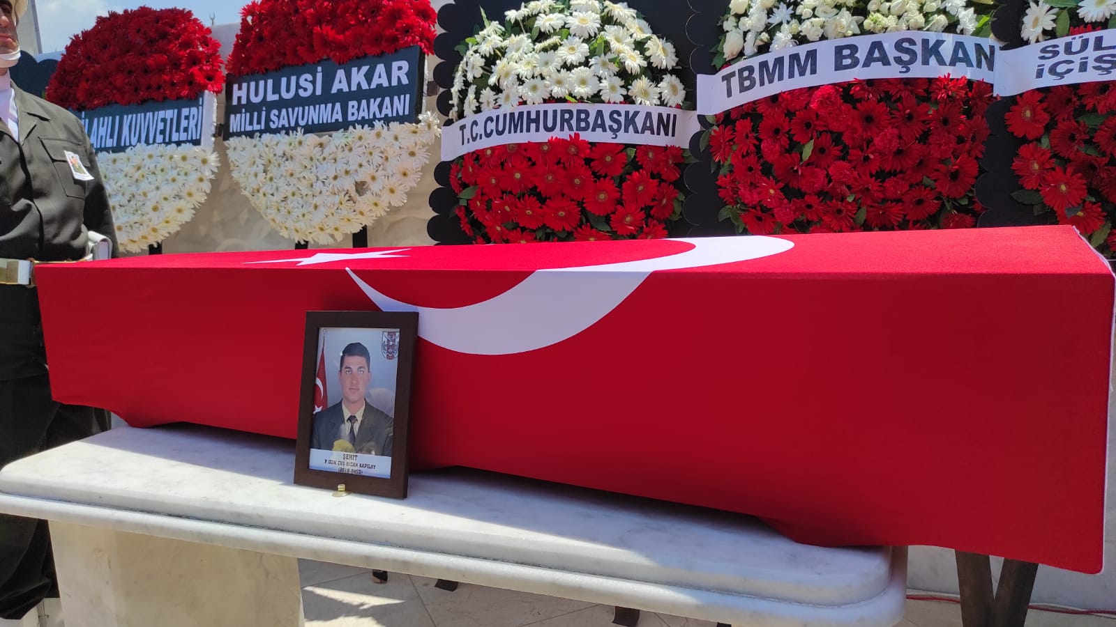 Şehit Bican Kapılay, burada gözyaşlarıyla toprağa verilirken, protokol üyeleri şehidimizin ailesine taziyelerini iletti.