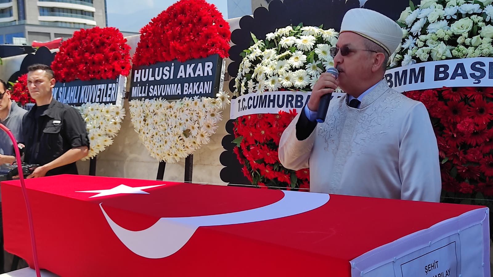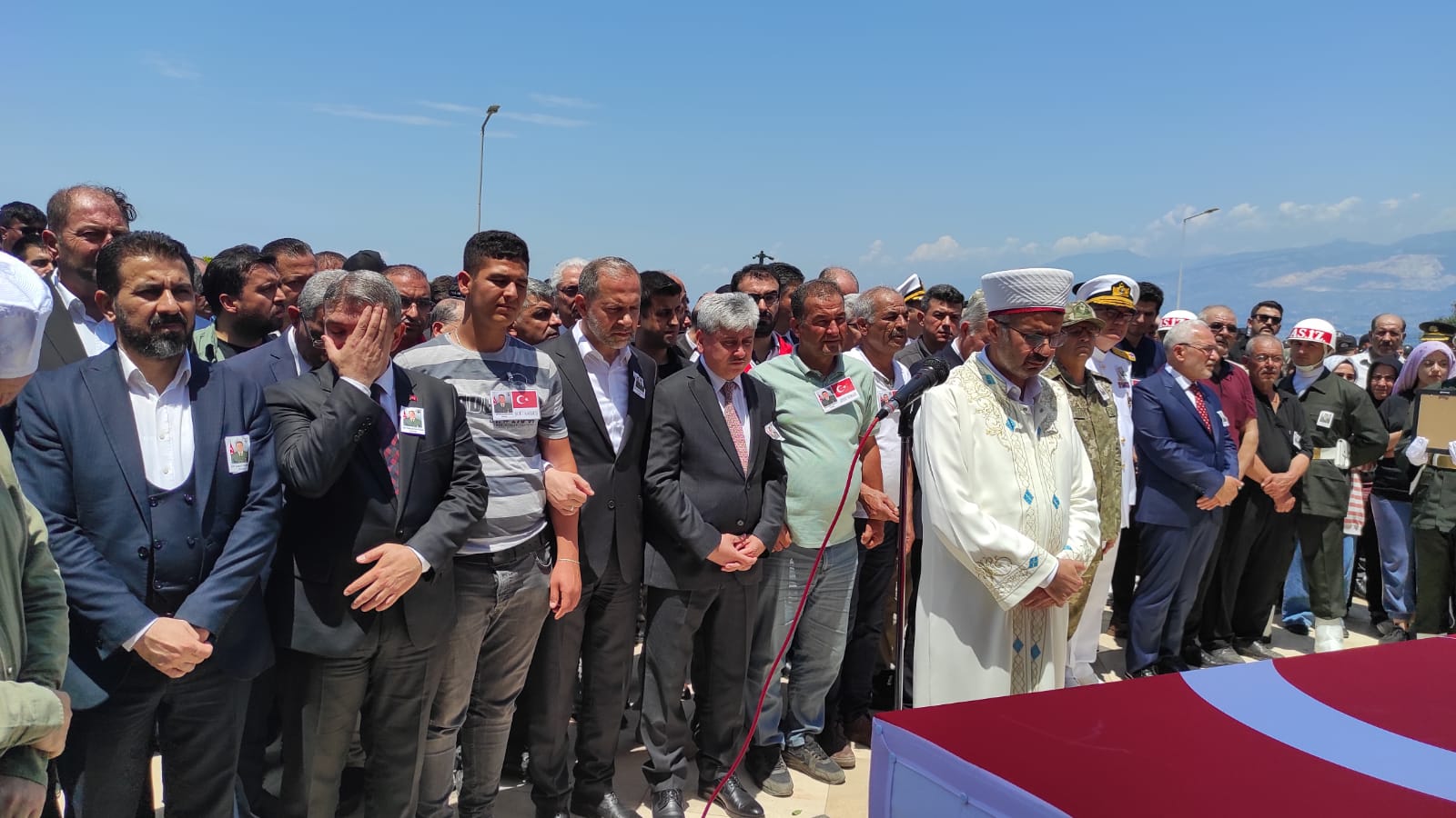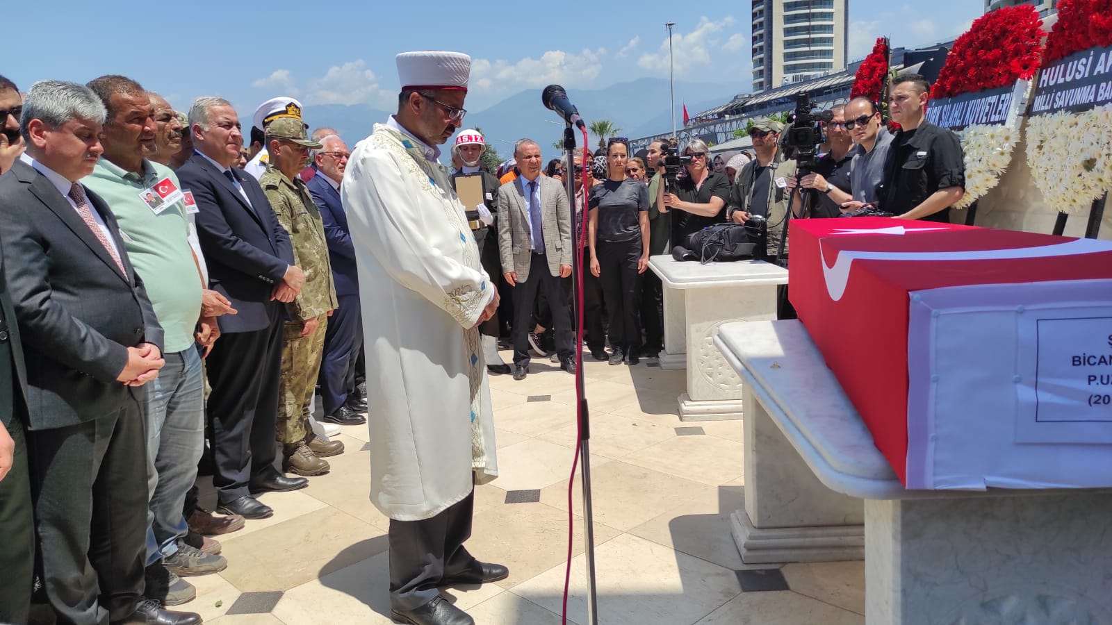 Aile ve Sosyal Hizmetler Bakan Yardımcısı İsmail Ergüneş, Hatay Valisi Rahmi Doğan, Ak Parti Hatay Milletvekili Abdülkadir Özel, İskenderun Belediye Başkanı Fatih Tosyalı, kamu kurum müdürleri, siyasi parti temsilcileri, belediye meclis üyeleri, sivil toplum kuruluşu temsilcileri, askeri ve sivil erkan ile şehidimizin ailesinin katıldığı cenaze töreninde, cenaze namazını Hatay İl Müftüsü Ömer Faruk Bilgili kıldırdı.