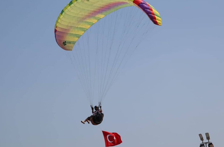 İskenderun’da 30 Ağustos Zafer Bayramı kutlamaları çerçevesinde İskenderun Belediyesinin organizasyonu ile yamaç paraşütü gösteri uçuşu gerçekleştirildi.