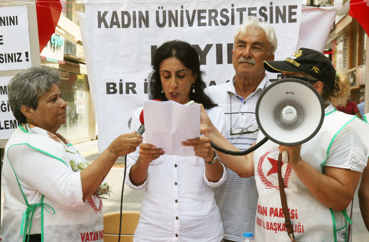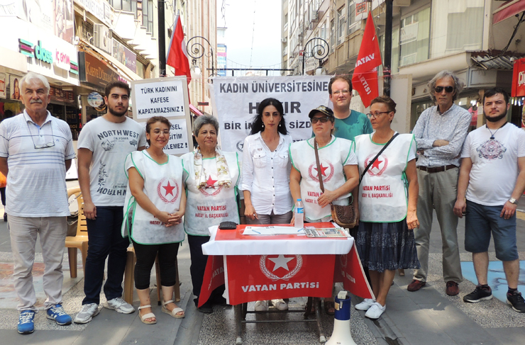 Vatan Partisi’nin kadın kolları Öncü Kadın olarak, bugünden itibaren “Üniversiteli Kadını Kafese Koyamazsınız” kampanyası başlatıyoruz. Edirne’den Ardahan’a Türkiye’nin dört bir tarafındaki kadınları ayağa kaldıracak, Kadın Üniversitelerini açtırmayacağız. Partimize üye olsun olmasın bütün kadınları mücadeleye çağırıyoruz. Başta kadın örgütleri olmak üzere bilim dünyası örgütlerini, iş dünyası örgütlerini, gençlik örgütlerini, meslek odalarını, demokratik kitle örgütlerini birlikte hareket etmeye davet ediyoruz” şeklinde açıklamalarda bulundu.